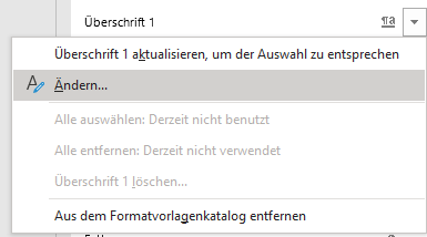 –> kleiner Pfeil –> Ändern = Formatvorlagenfenster öffnet sich