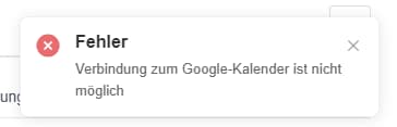 Folgende Fehlermeldung: Fehler Verbindung zum Google-Kalender ist nicht mölglich.