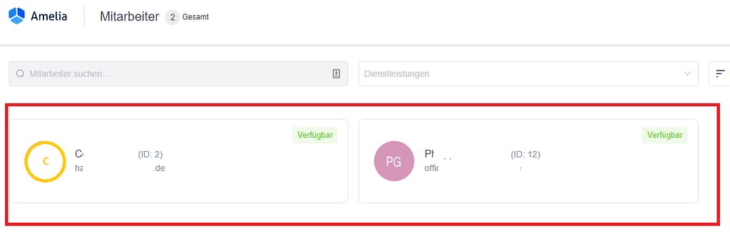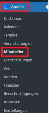 Klicke im Menü auf Amelia > Mitarbeiter.