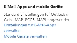 Ein Klick auf „Einstellungen für E-Mail-Apps verwalten“ fördert Folgendes zutage: